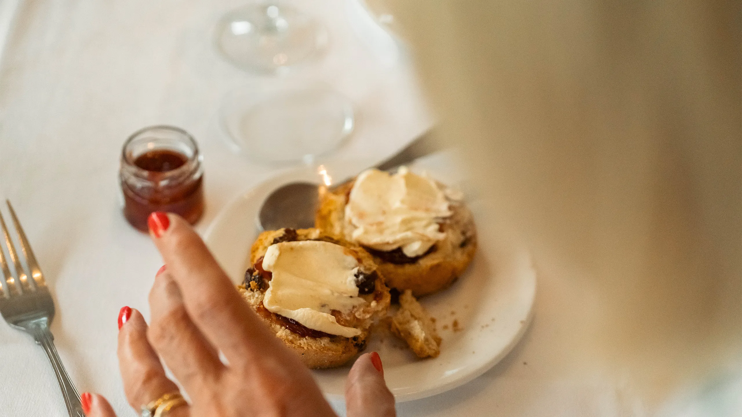 Treating yourself to our Classic Cream Tea, the perfect informal treat, with freshly baked scones, jam and clotted cream, ideal for a light indulgence.